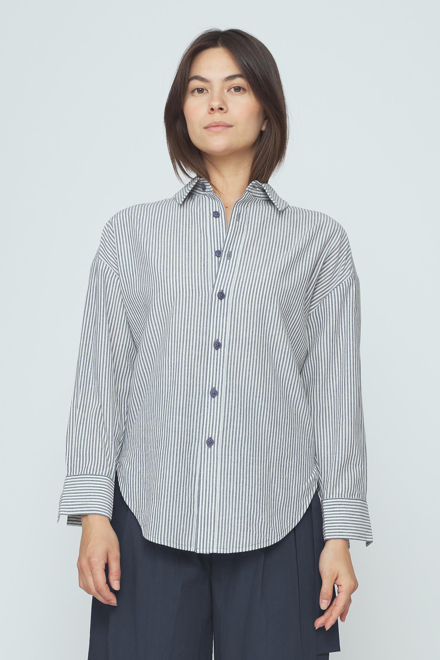 Dolman Shirt, Navy Stripes