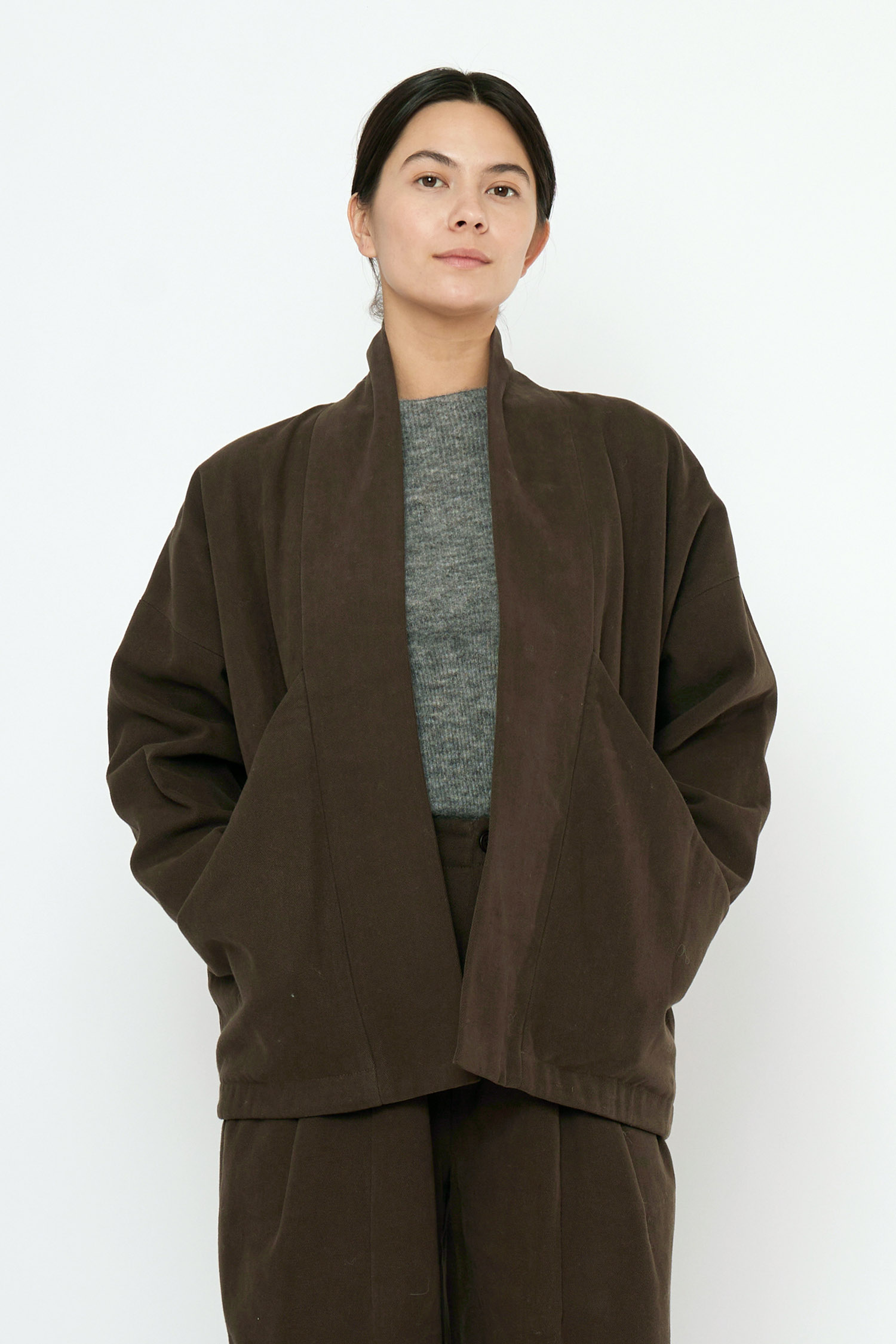 The Signature Sumo Jacket is ideal for all those in-between days. Cut with an oversized and relaxed cocoon silhouette, drop shoulders, and an open closure. Curved hem, with longer length in the back. Features large side pockets. Fully lined.