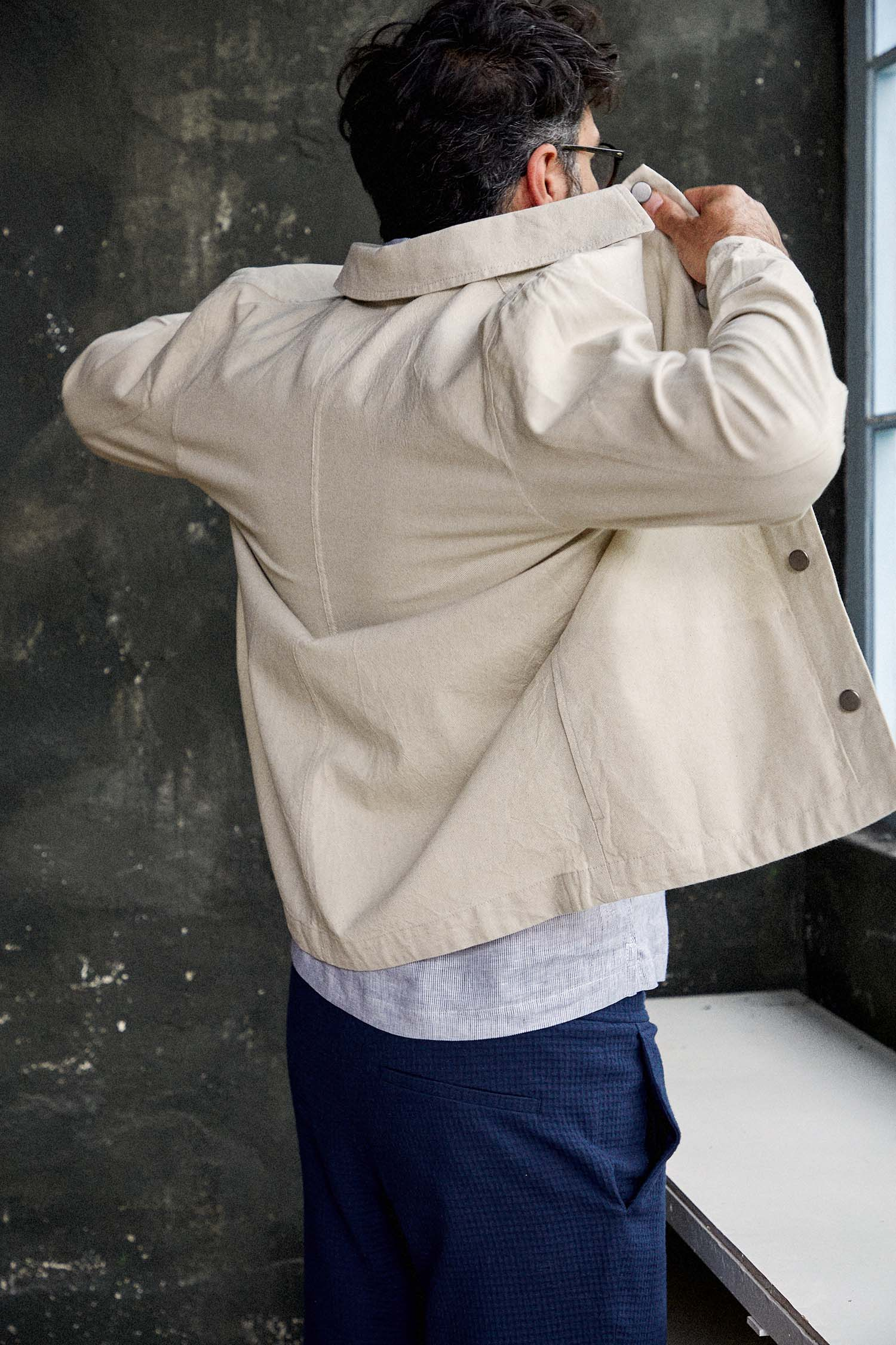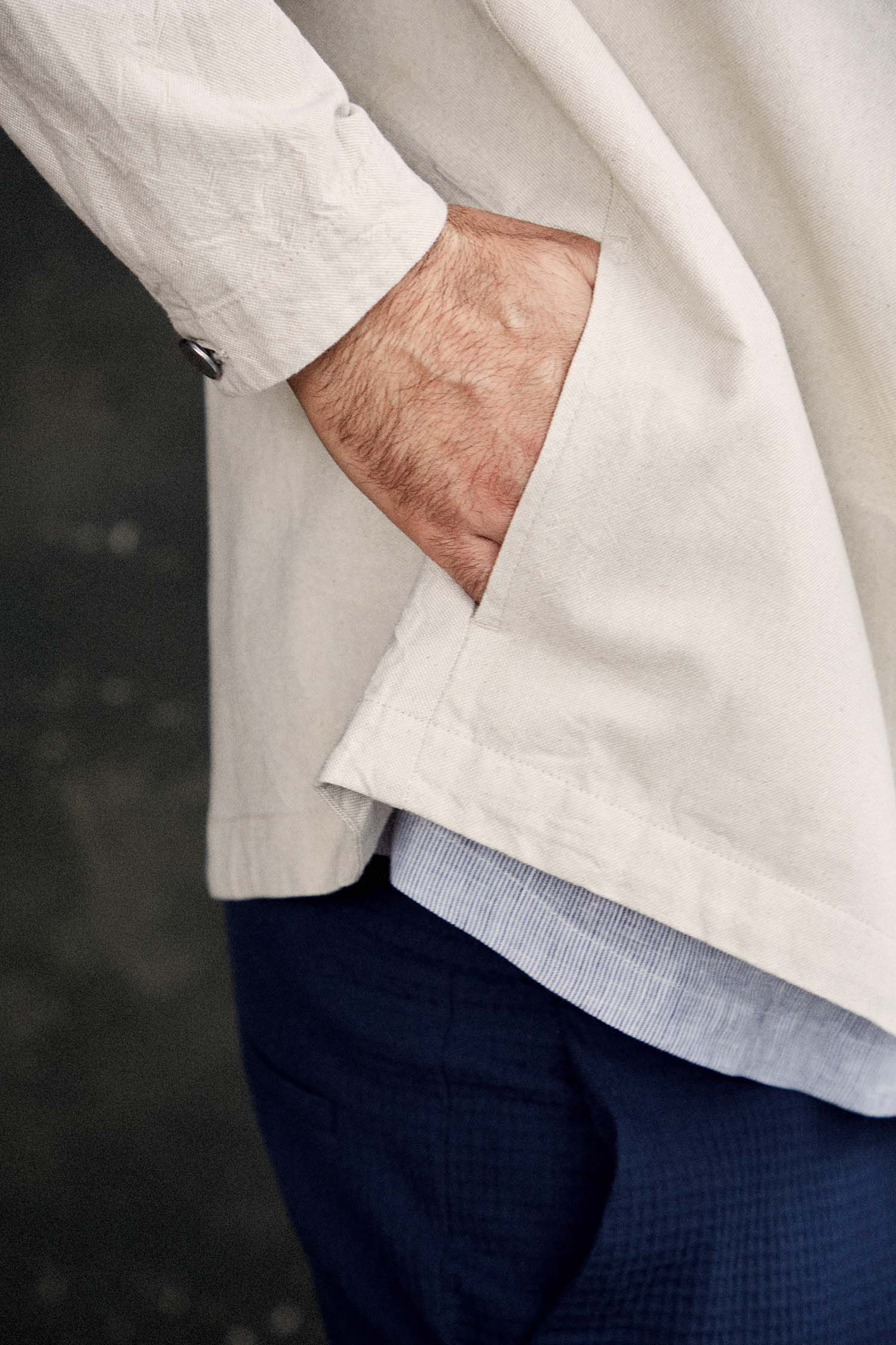 Casual jacket made from durable 230g/sqm organic canvas with chest pocket, side pockets and hidden inside pockets.