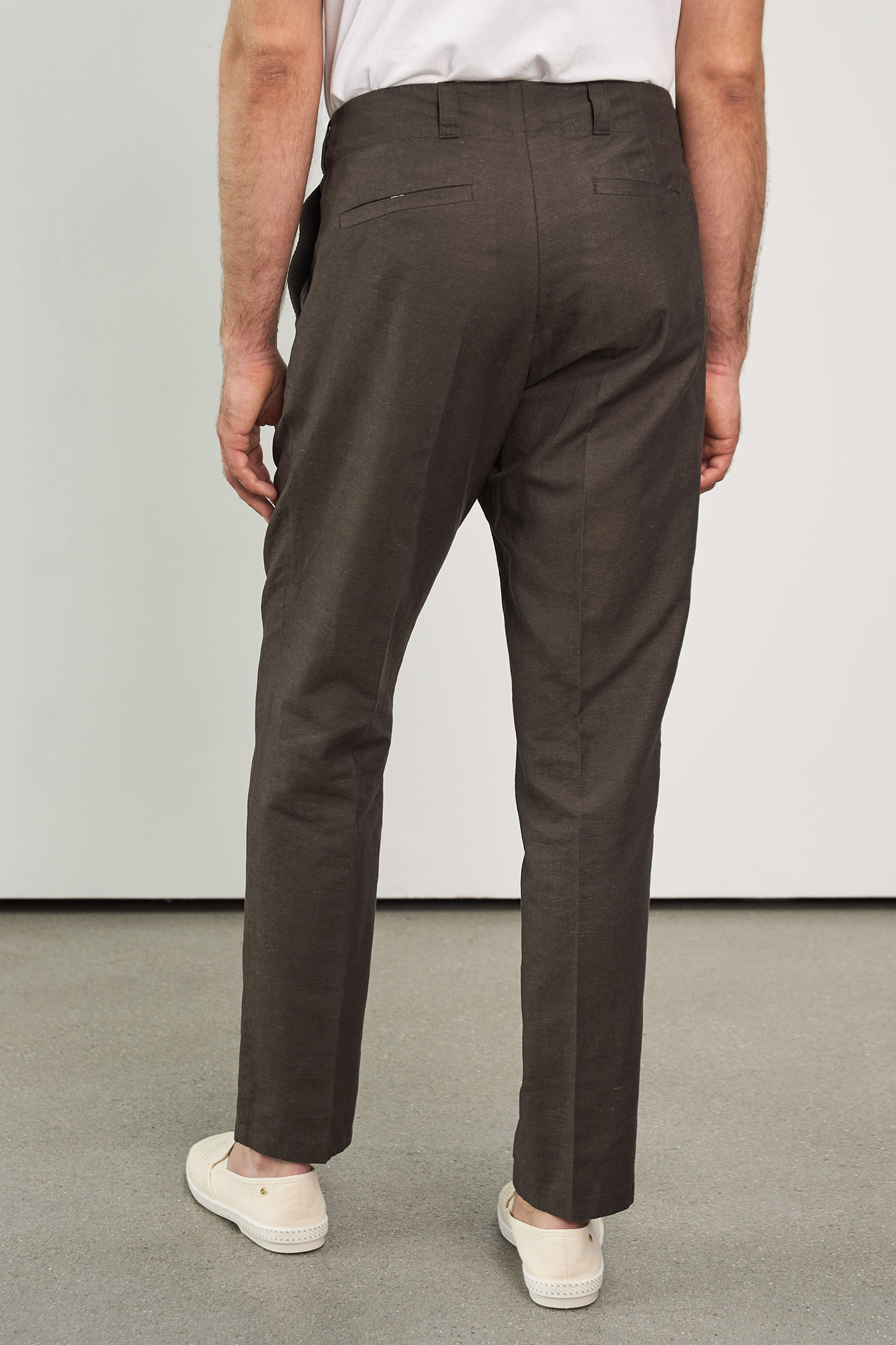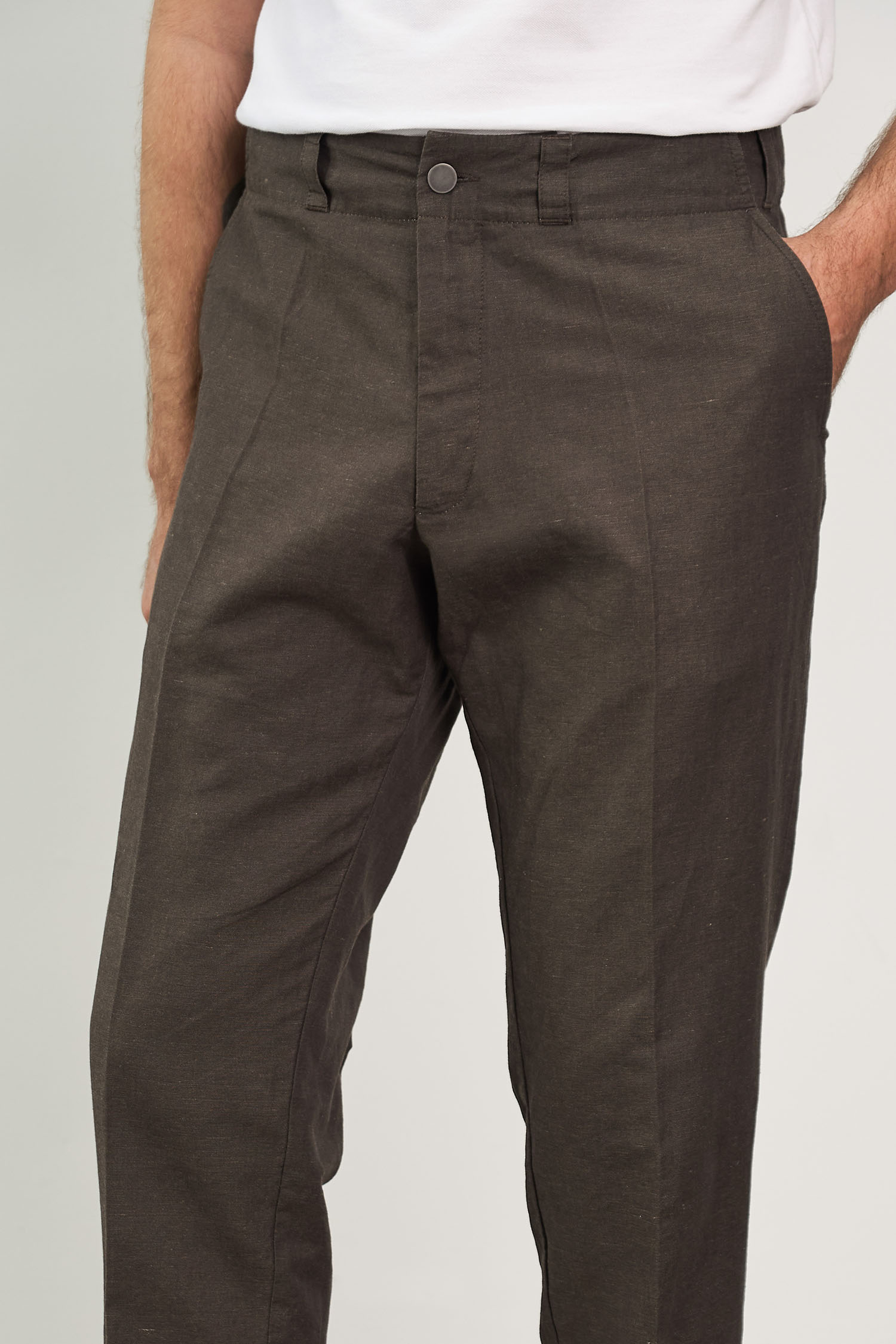 Klassische Hose aus luftigem Leinenmischgewebe mit zwei Seitentaschen und zwei Gesässtaschen mit verstecktem Verschluss, um in Form zu bleiben. Hochwertige Knopfleiste und Reissverschluss aus Deutschland.