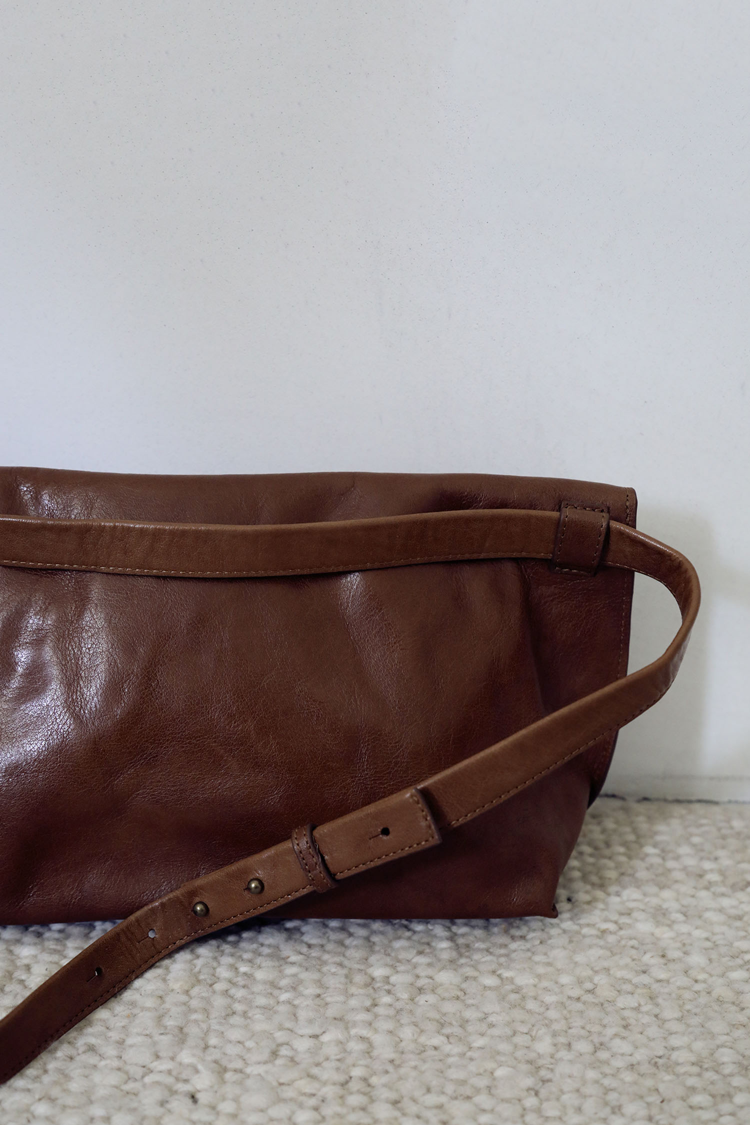 Handgefertigte Umhängetasche, inklusive Lederriemen.