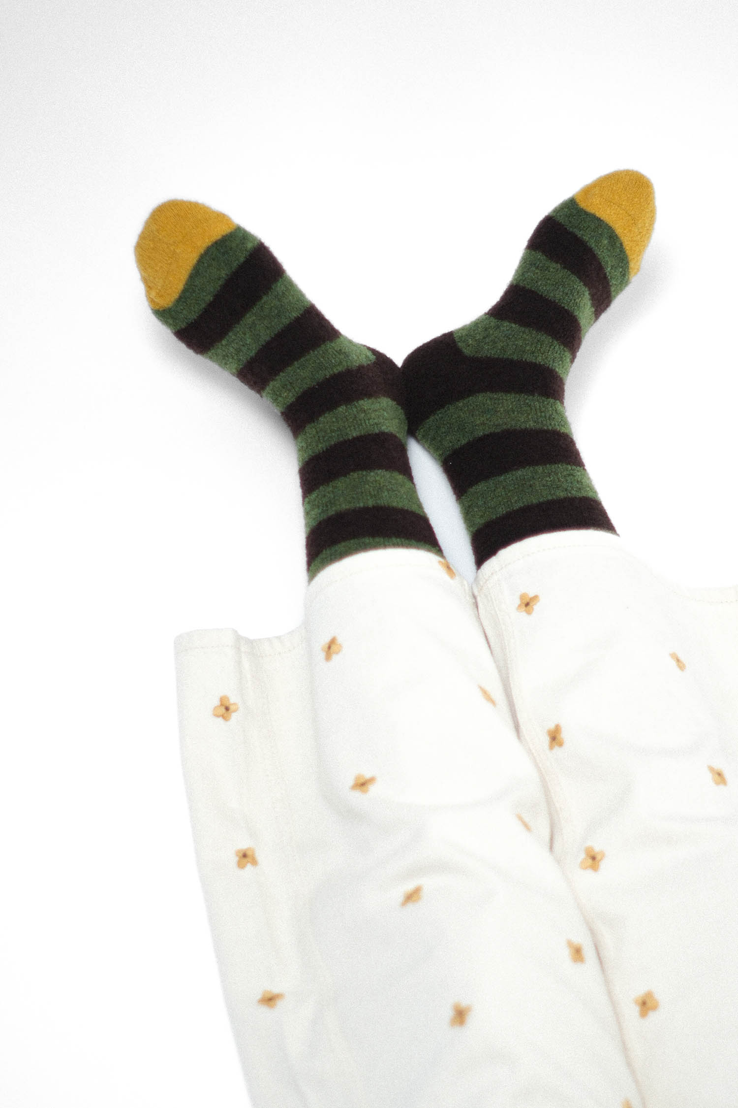 Bonne Maison konzentriert sich auf die Herstellung fantasiereich gemusterter Socken. Die verwendete Baumwolle aus Ägypten wird zuerst in Italien gesponnen und dann in Frankreich oder Portugal nach höchstem Standard gestrickt.