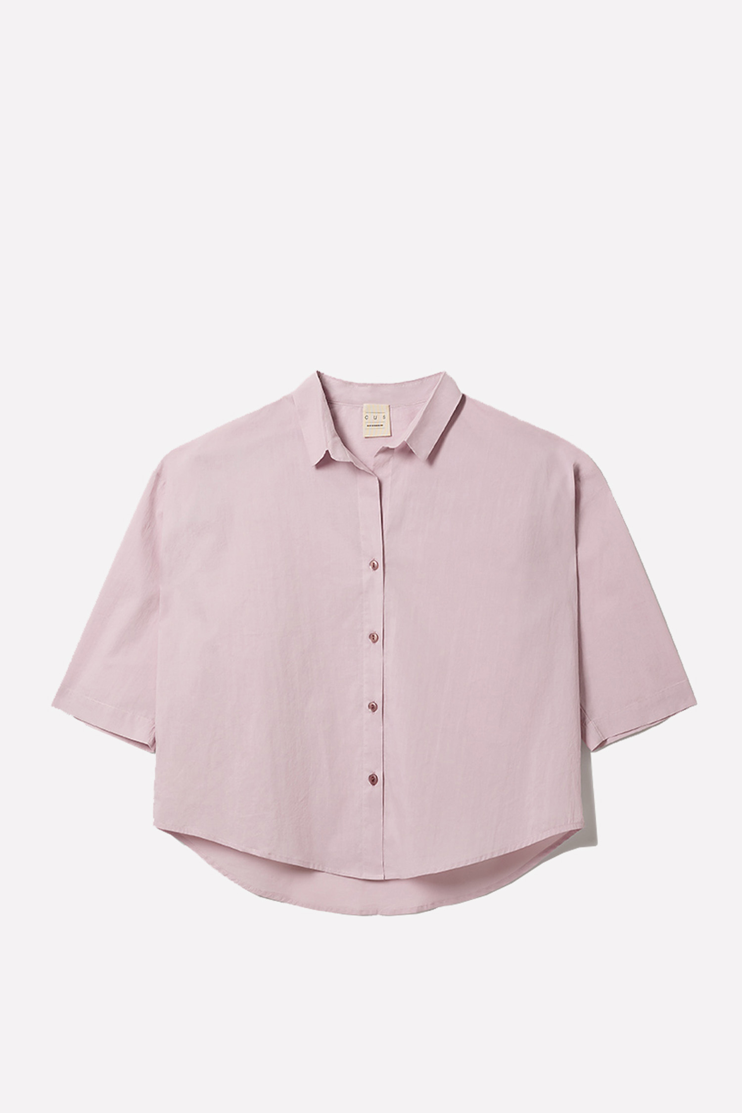 Kurzärmeliges Hemd mit Knöpfen, spitzem Kragen und abgerundetem Saum.
