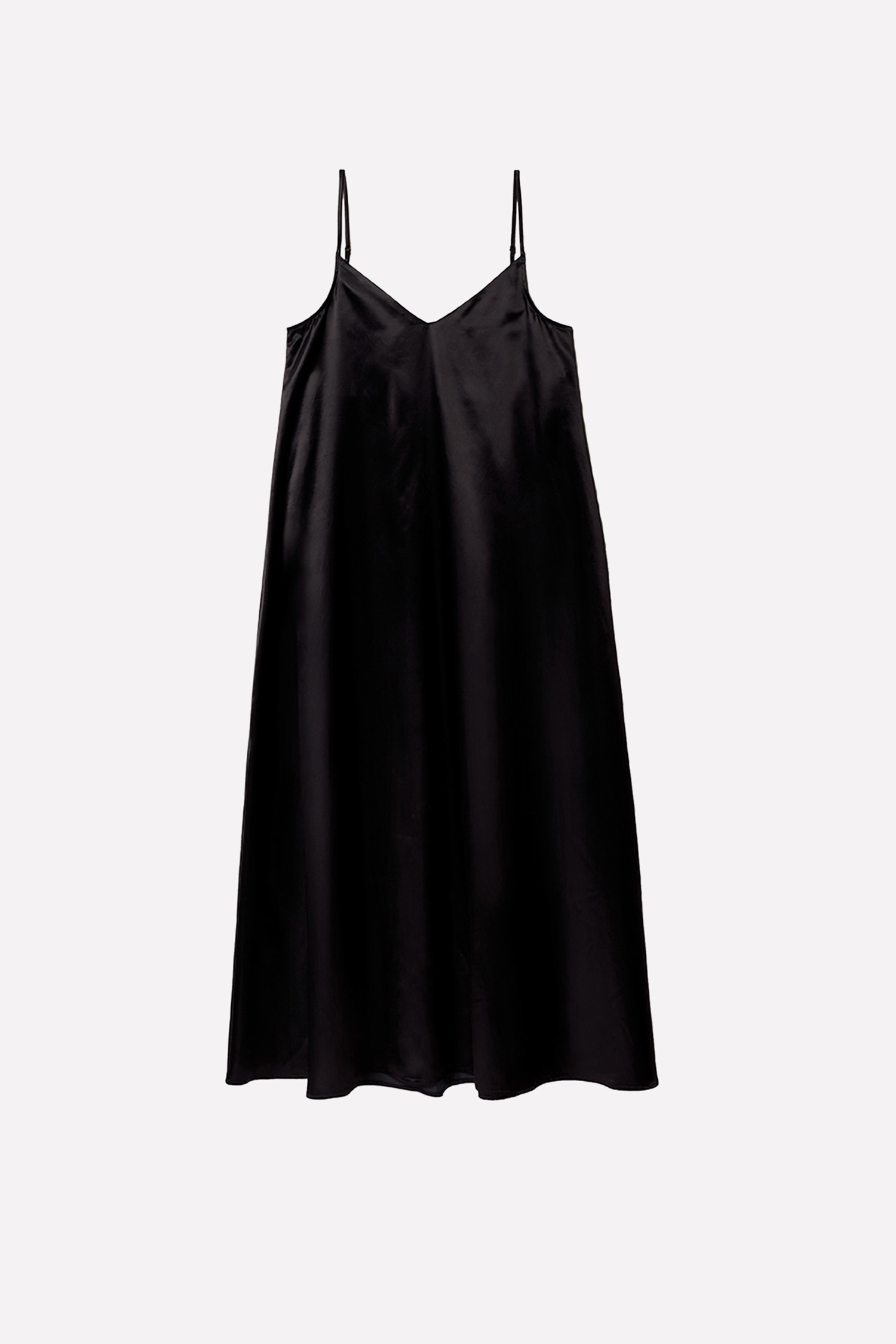 Schräg geschnittenes Slip-Kleid mit Spaghettiträgern und V-Ausschnitt.
