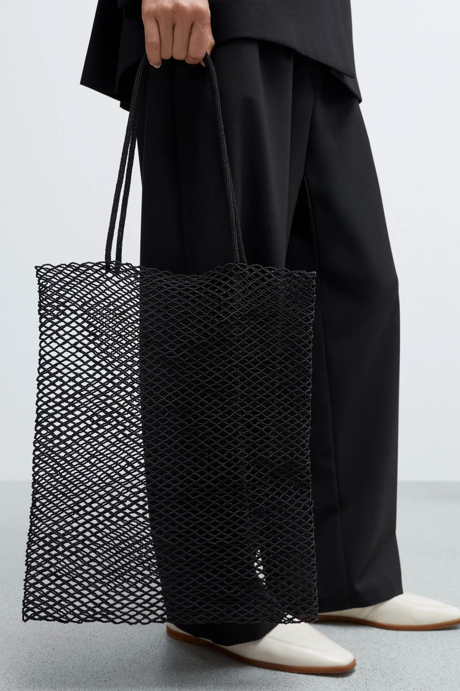 Dieses Stück ist das Ergebnis einer Zusammenarbeit zwischen CORDERA und einer Frauengemeinschaft in Mittelamerika. Eine handgefertigte, fein gearbeitete Tote-Bag, die ein perlenbesetztes Fischernetz mit zwei langen Trägern bildet. Eine bequeme und geräumige Tasche für den Alltag.