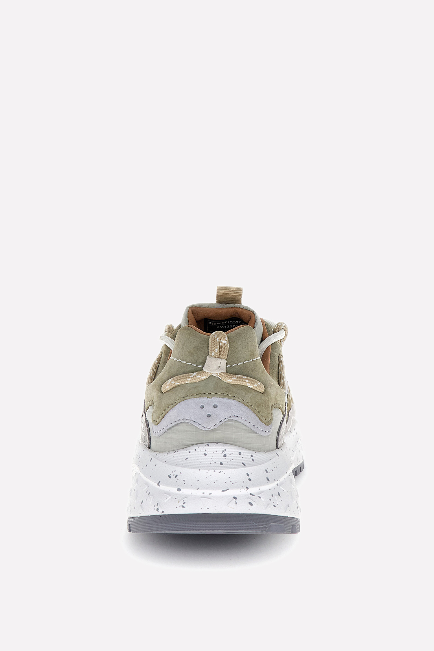 Outdoor-Sneaker aus Ripstop-Gewebe und Veloursleder mit technischen Rohrdetails. Verschluss mit Schnürsenkeln. Leder- und Stofffutter, natürliche antibakterielle Kork-Innensohle. Ultraleichte Gummisohle mit zweifarbigem Profil.