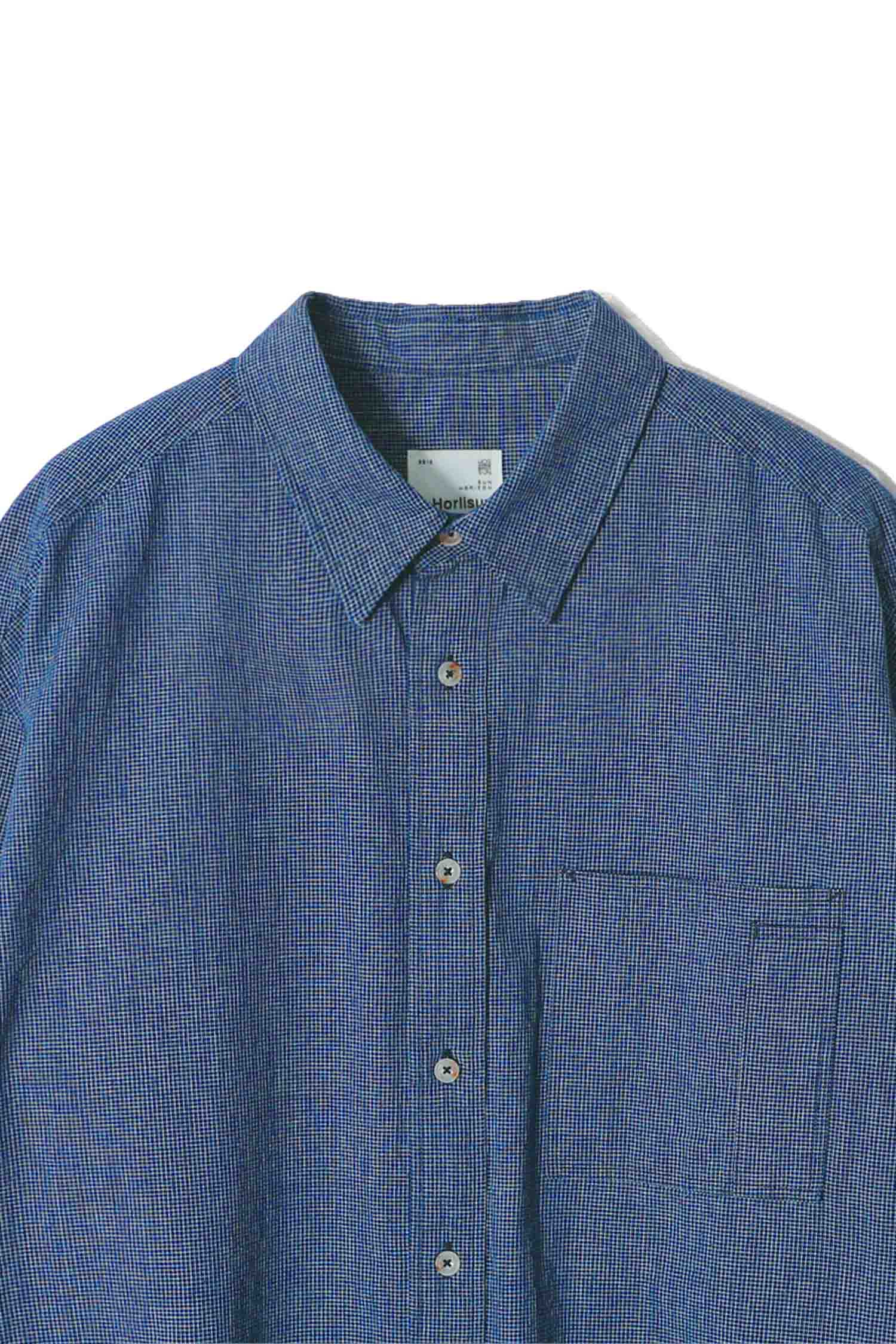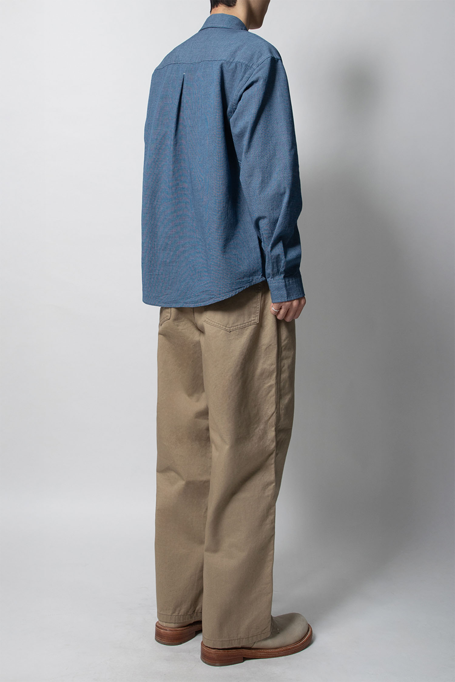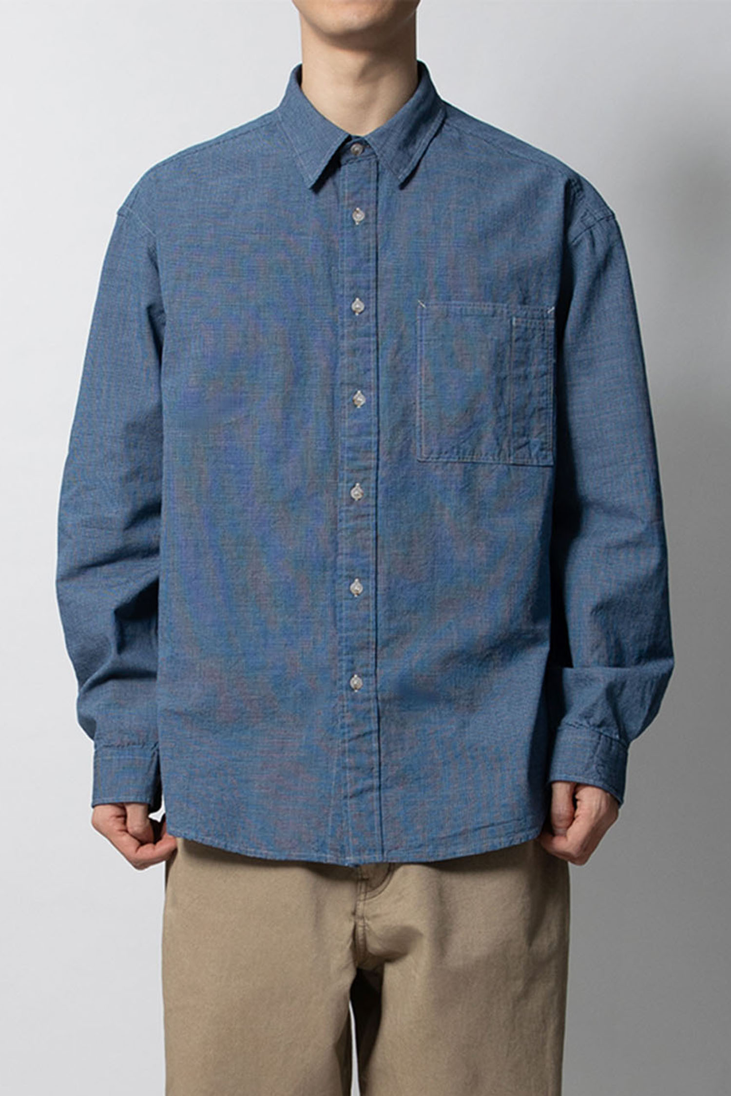 Denim-tone check patterned shirt with soft and structured fabric, garment-washed texture, relaxed fit and chest pocket with pen holder.