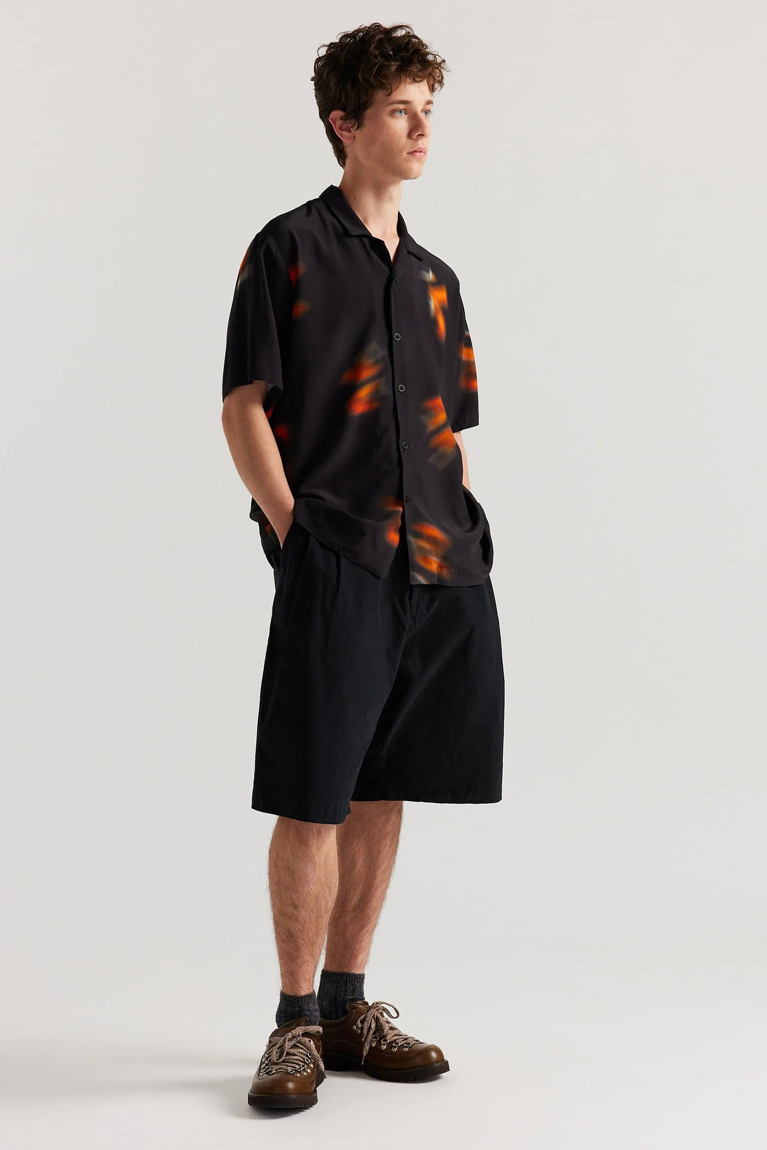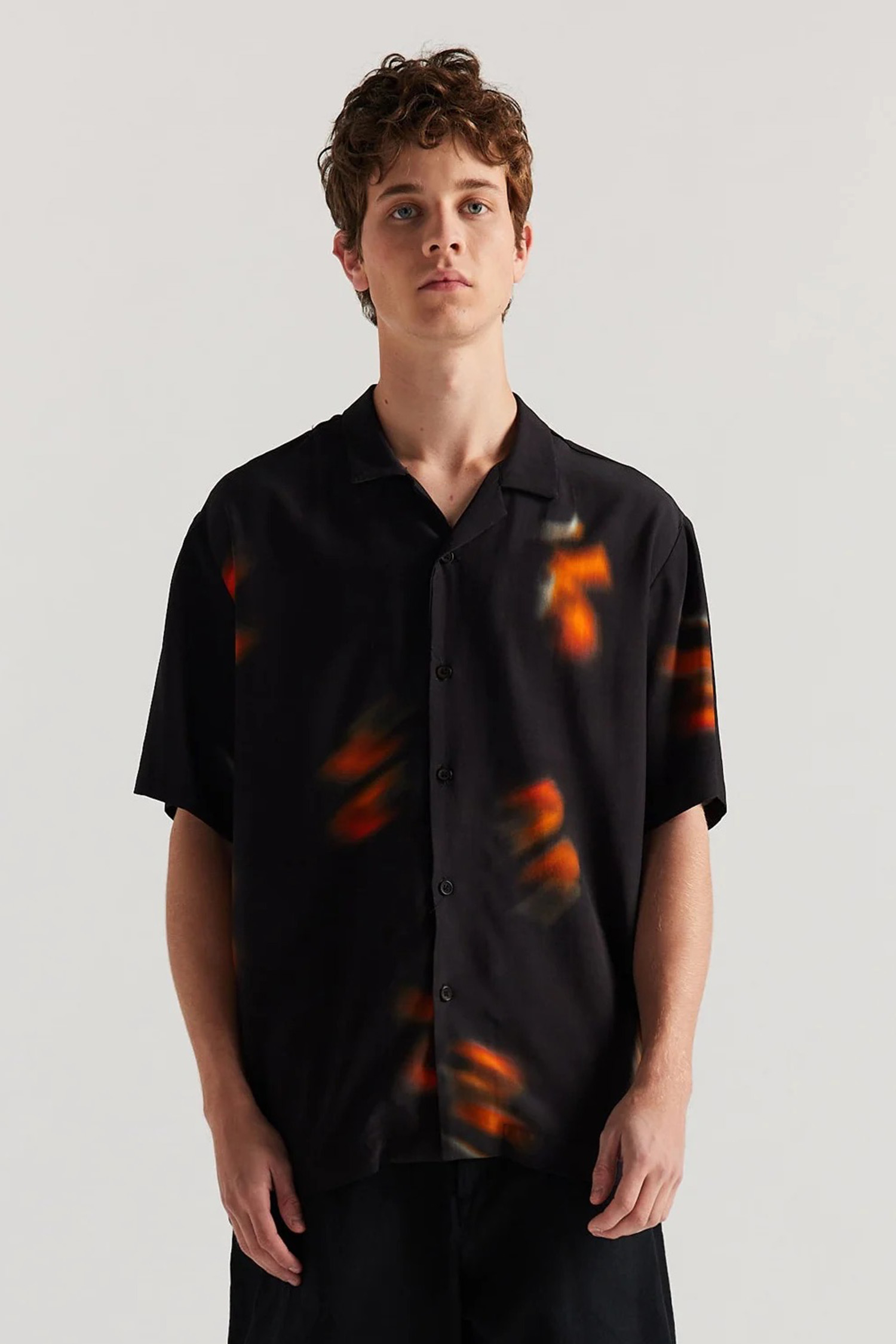 Wring Print Shirt, Black Orange