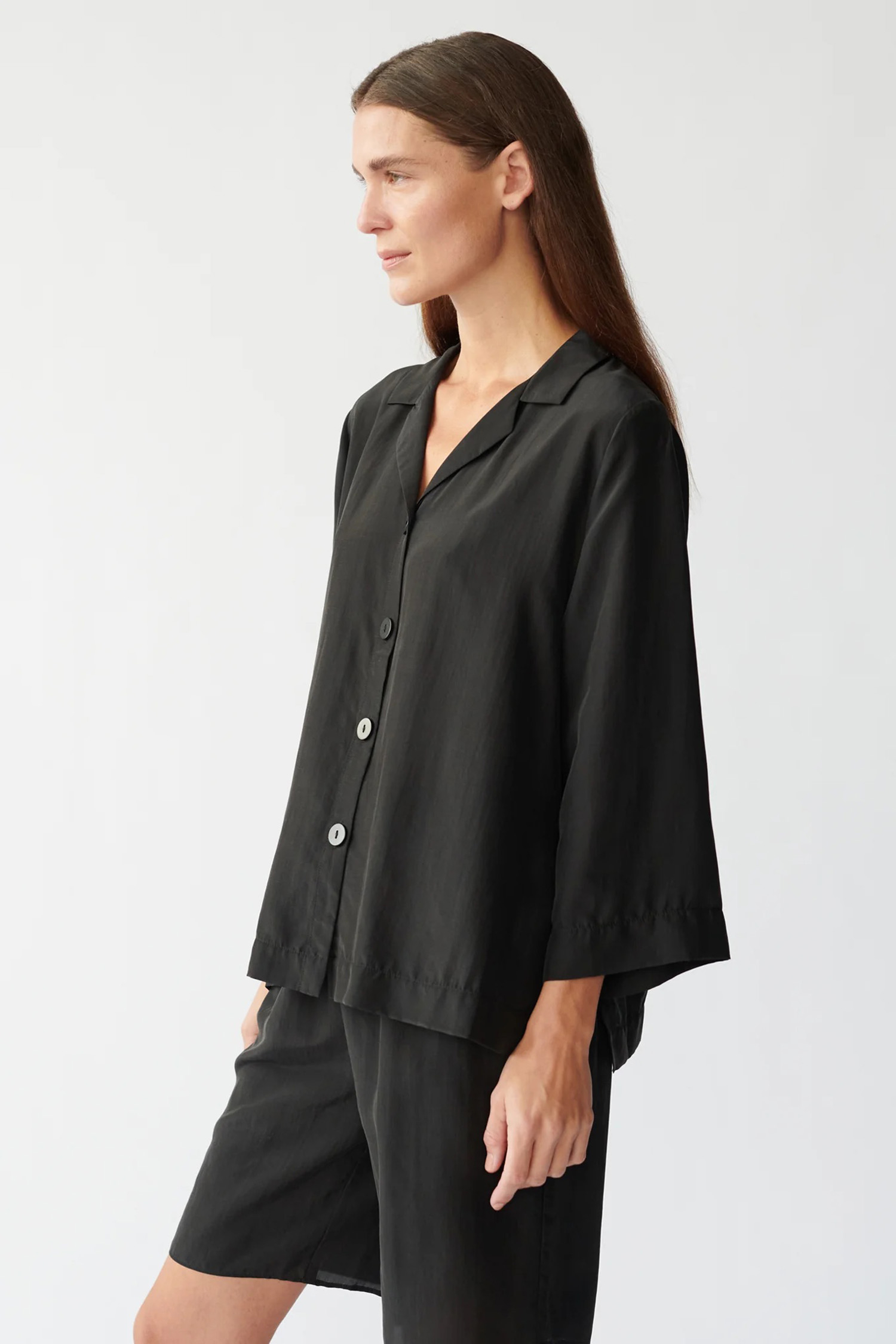 Classic boxer shorts, above the knee, with a loose silhouette and elasticated waistband with silk drawstring.