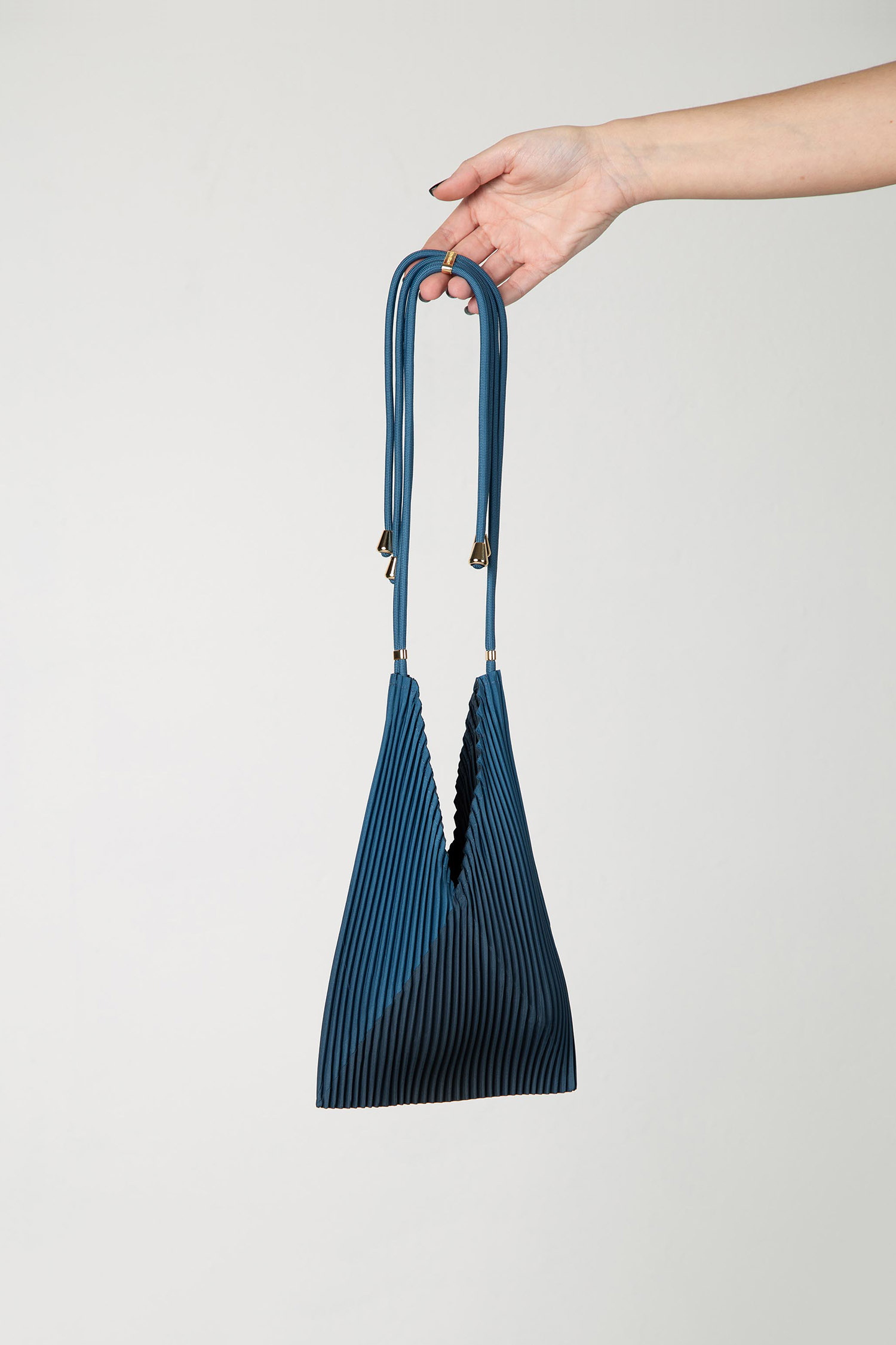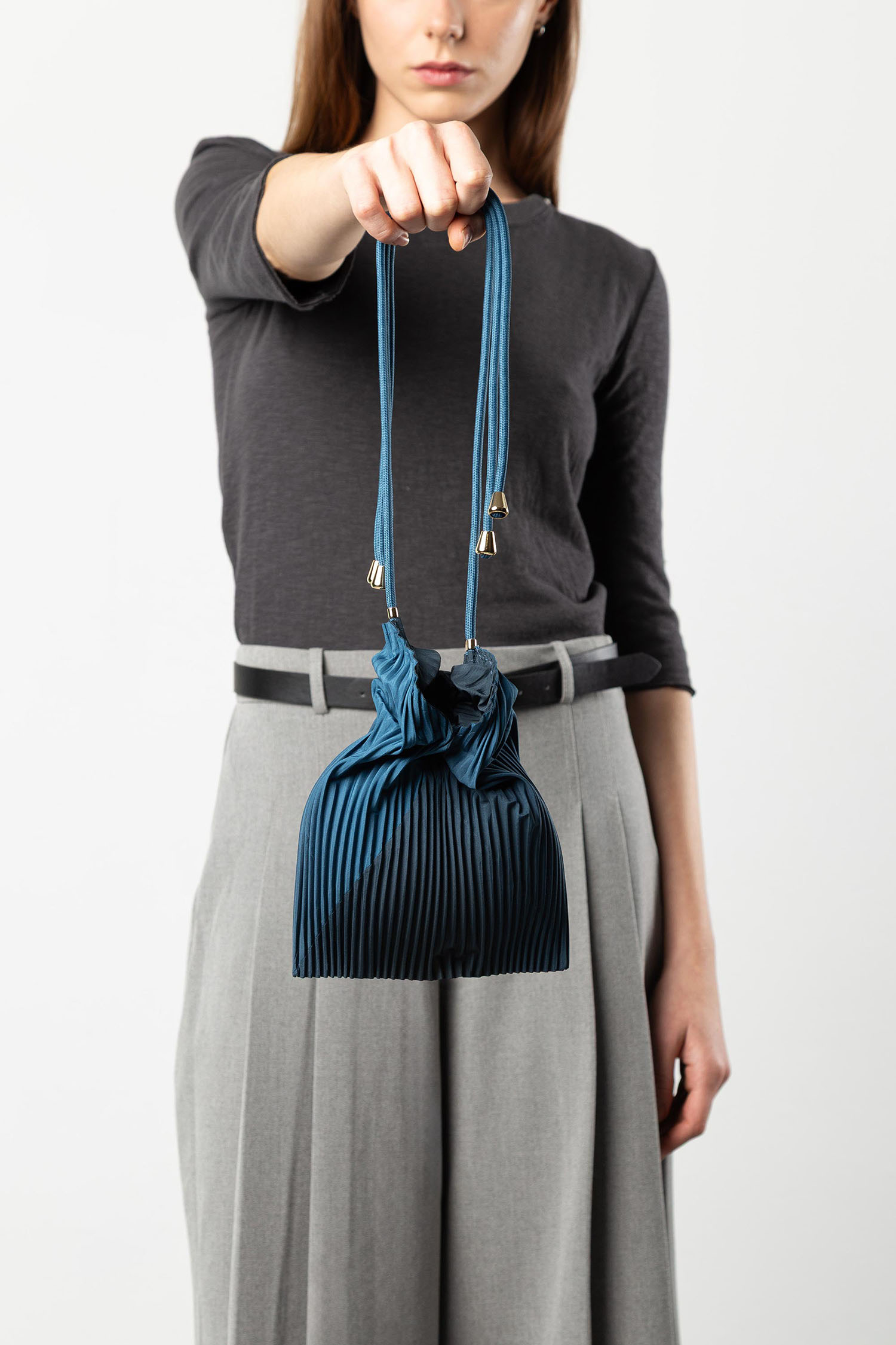 Minitasche aus plissiertem Satin mit einem 45 cm langen verstellbaren Schulterriemen.