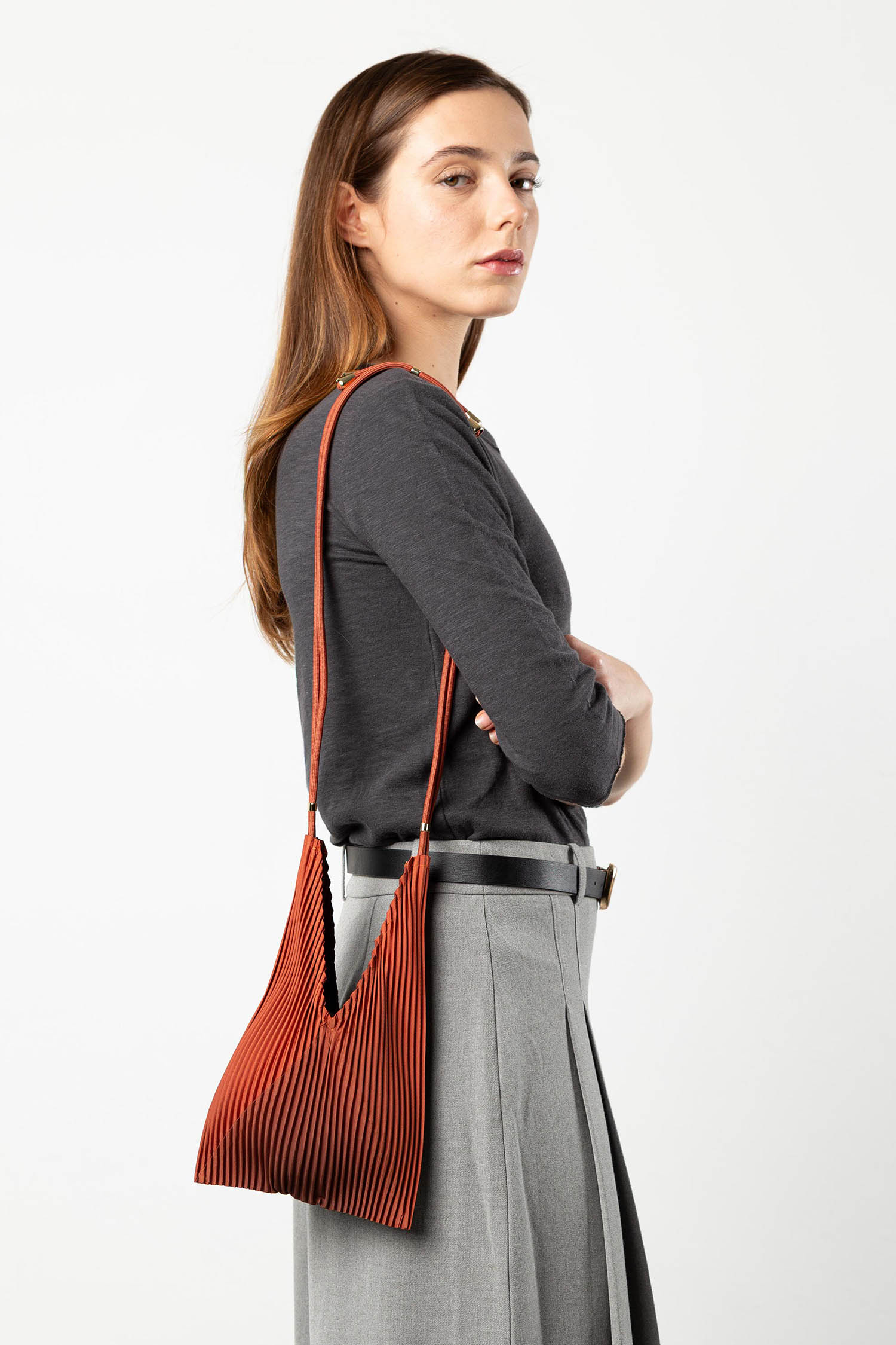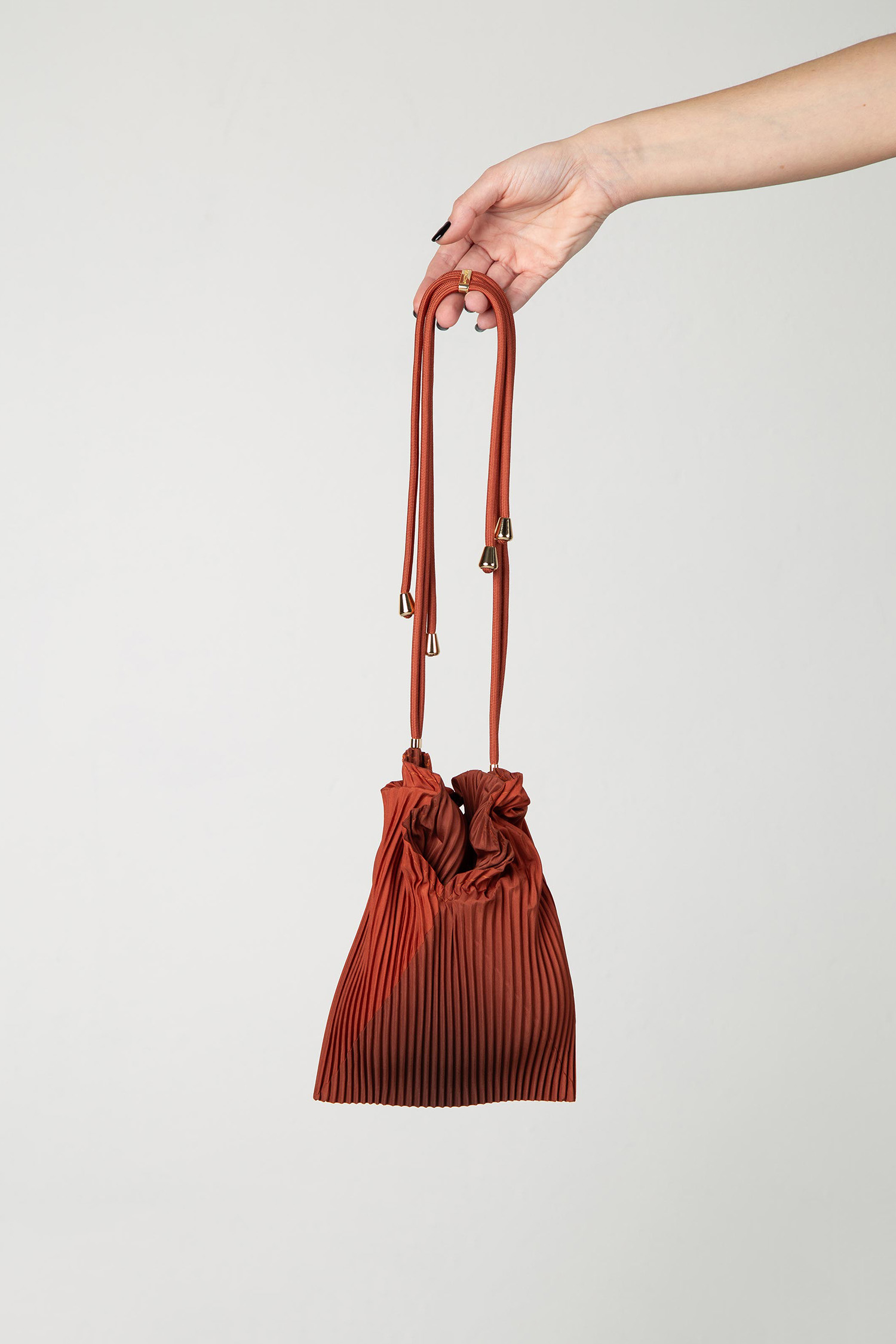 Minitasche aus plissiertem Satin mit einem 45 cm langen verstellbaren Schulterriemen.