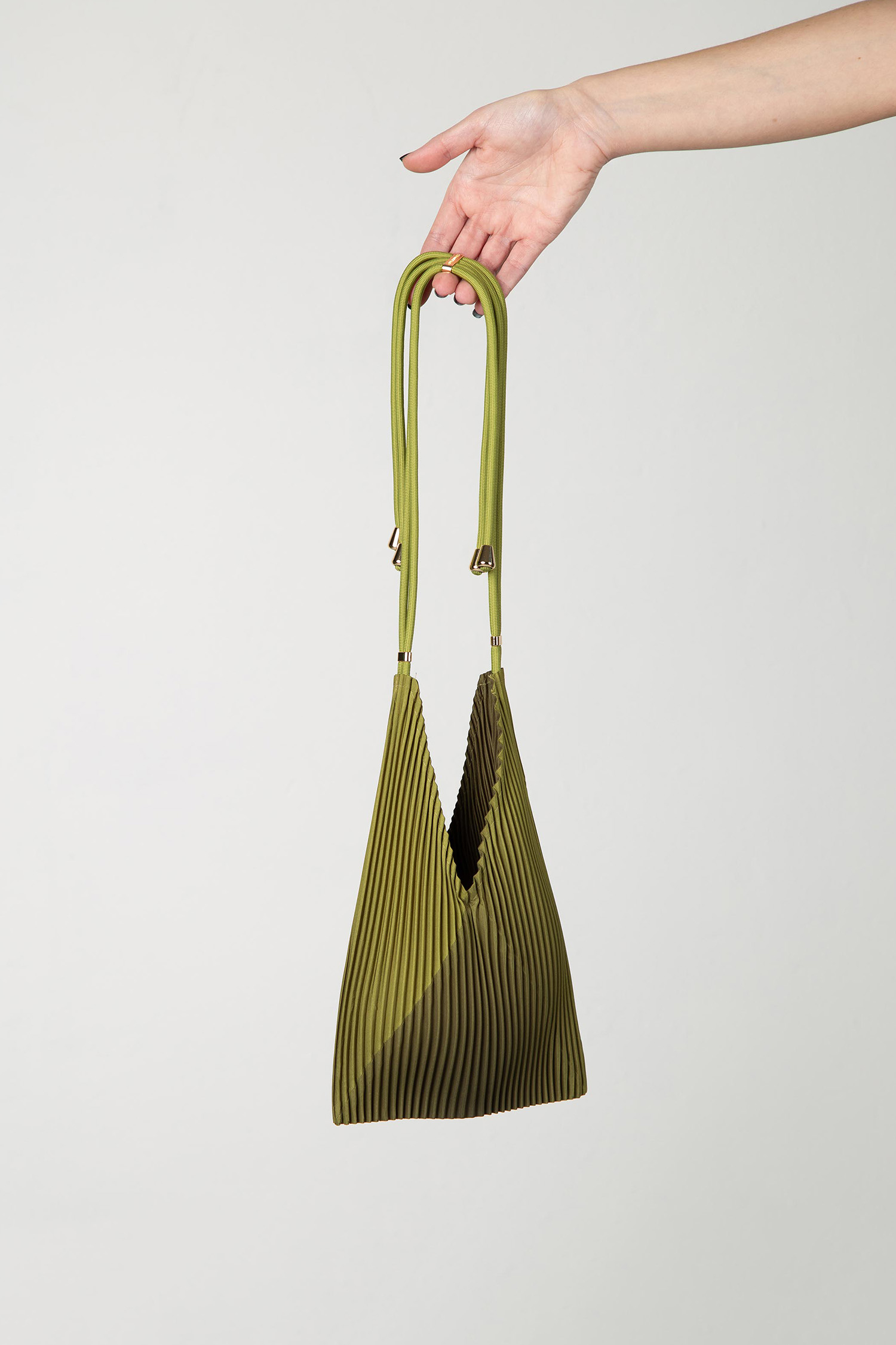 Minitasche aus plissiertem Satin mit einem 45 cm langen verstellbaren Schulterriemen.