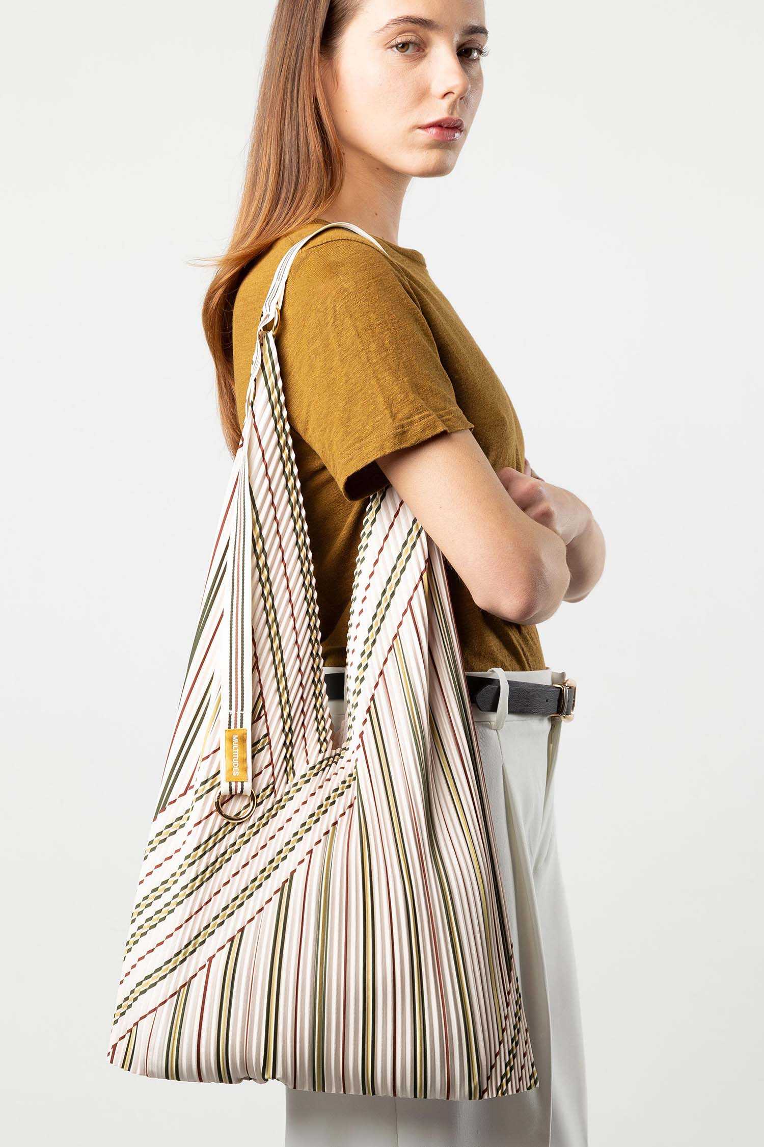 The pleated bags from Multitudes are suitable for a variety of occasions: They are as comfortable and roomy as they are soft and light.