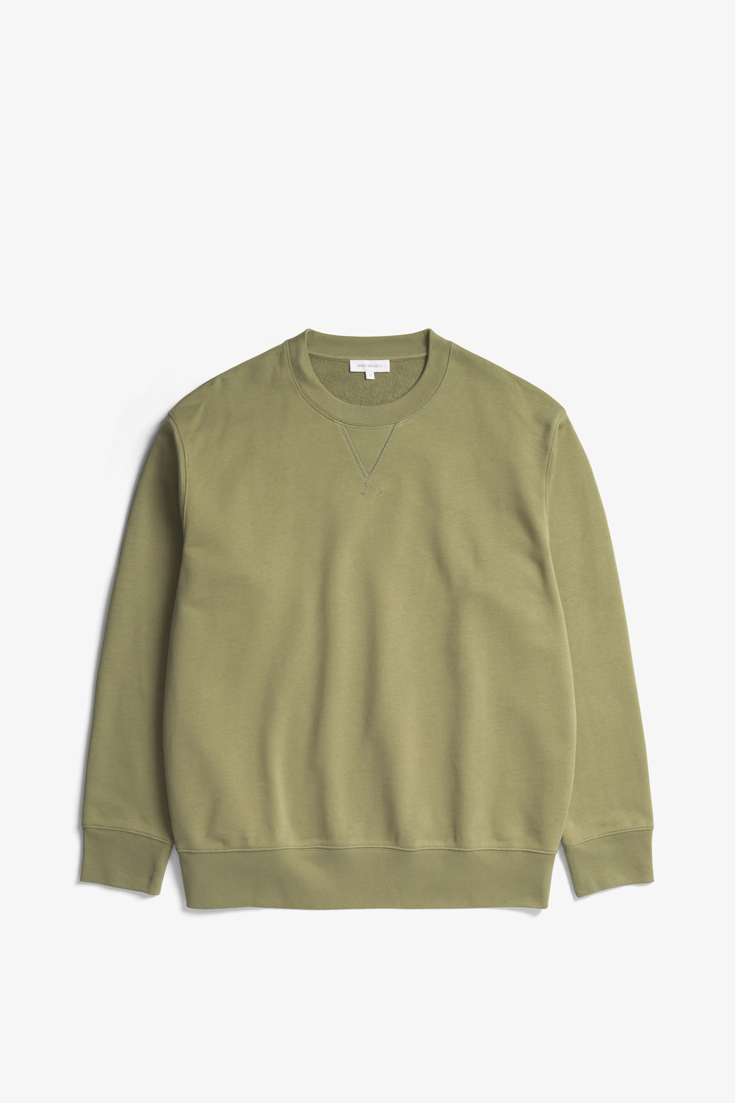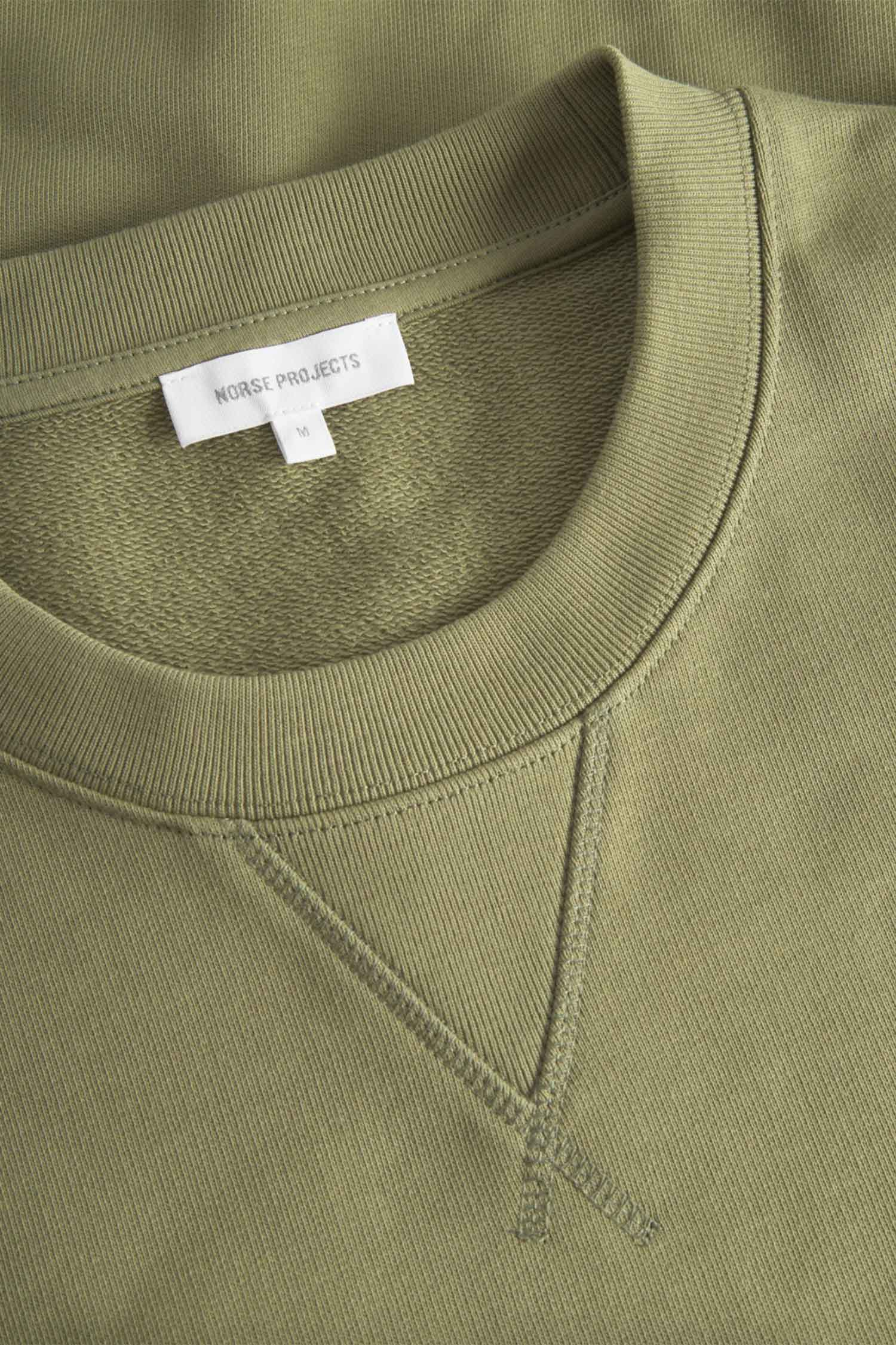 Das Norse Standard Sweatshirt ist aus mittelschwerer Bio-Baumwolle gefertigt und hat eine normale Passform. Es verfügt über angesetzte Ärmel, ein Loopback-Sweat-Finish, einen Zwickel in der vorderen Mitte sowie einen gerippten Kragen, Manschetten und Saum.