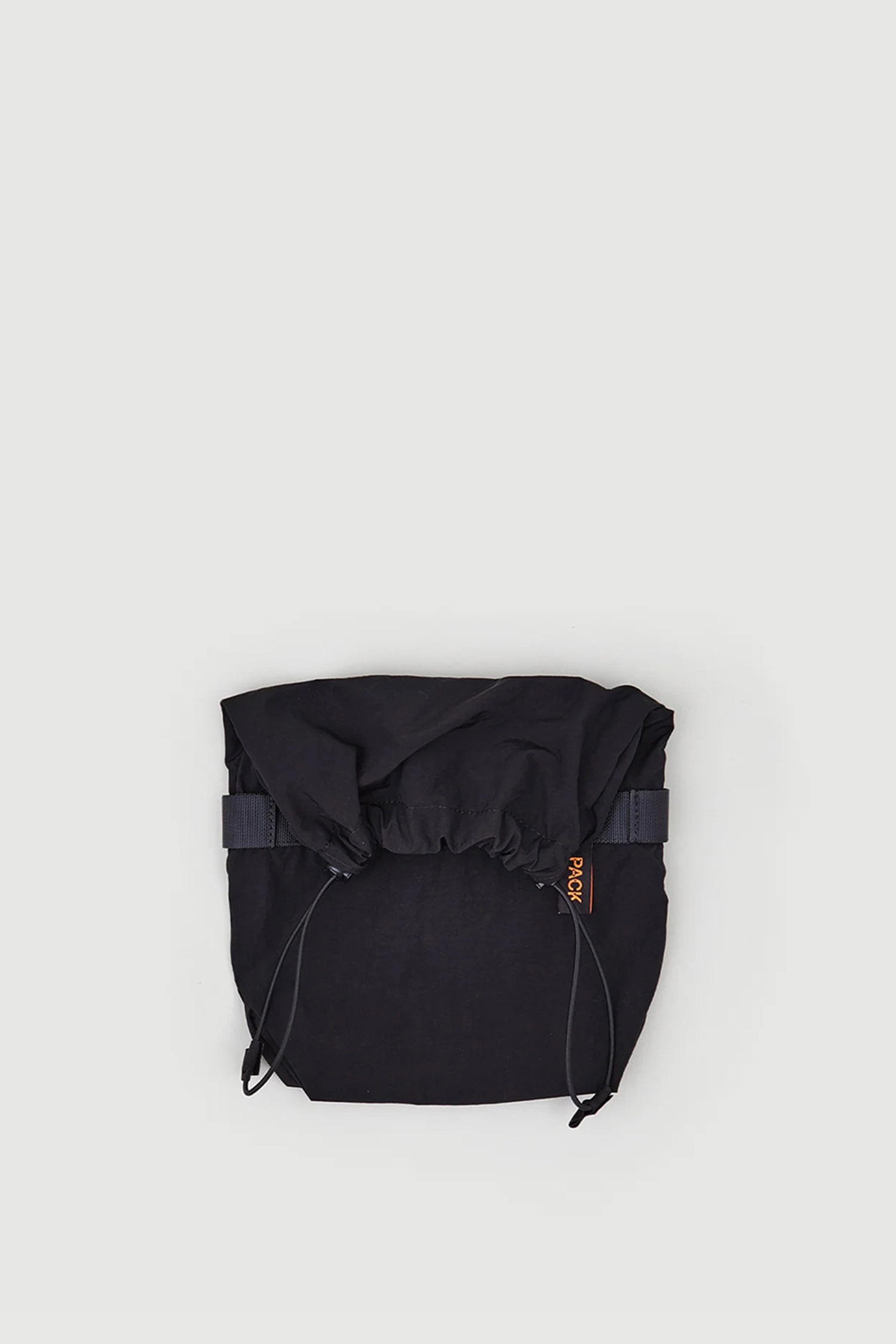 Materialien: Wasserdichtes italienisches Gewebe, verstärkt mit militärtauglichem Gurtband aus Grossbritannien. Elastischer Kordelzugverschluss. Innentasche mit YKK-Reissverschluss. Mit gewebtem Etikett mit der Aufschrift "PACK" und "Made in Europe".
