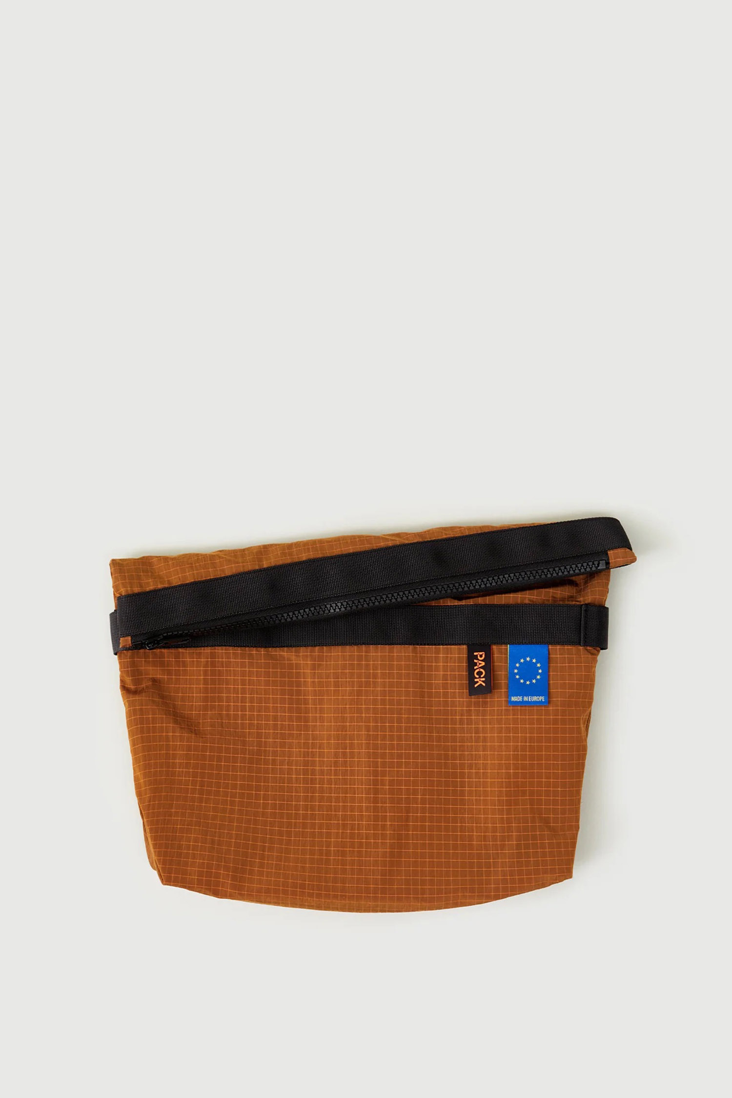 Materials: Waterproof ripstop nylon, reinforced with military-grade webbing made in the UK. YKK vislon zipper closure. Detailed with 'PACK' and 'Made in Europe' woven label.