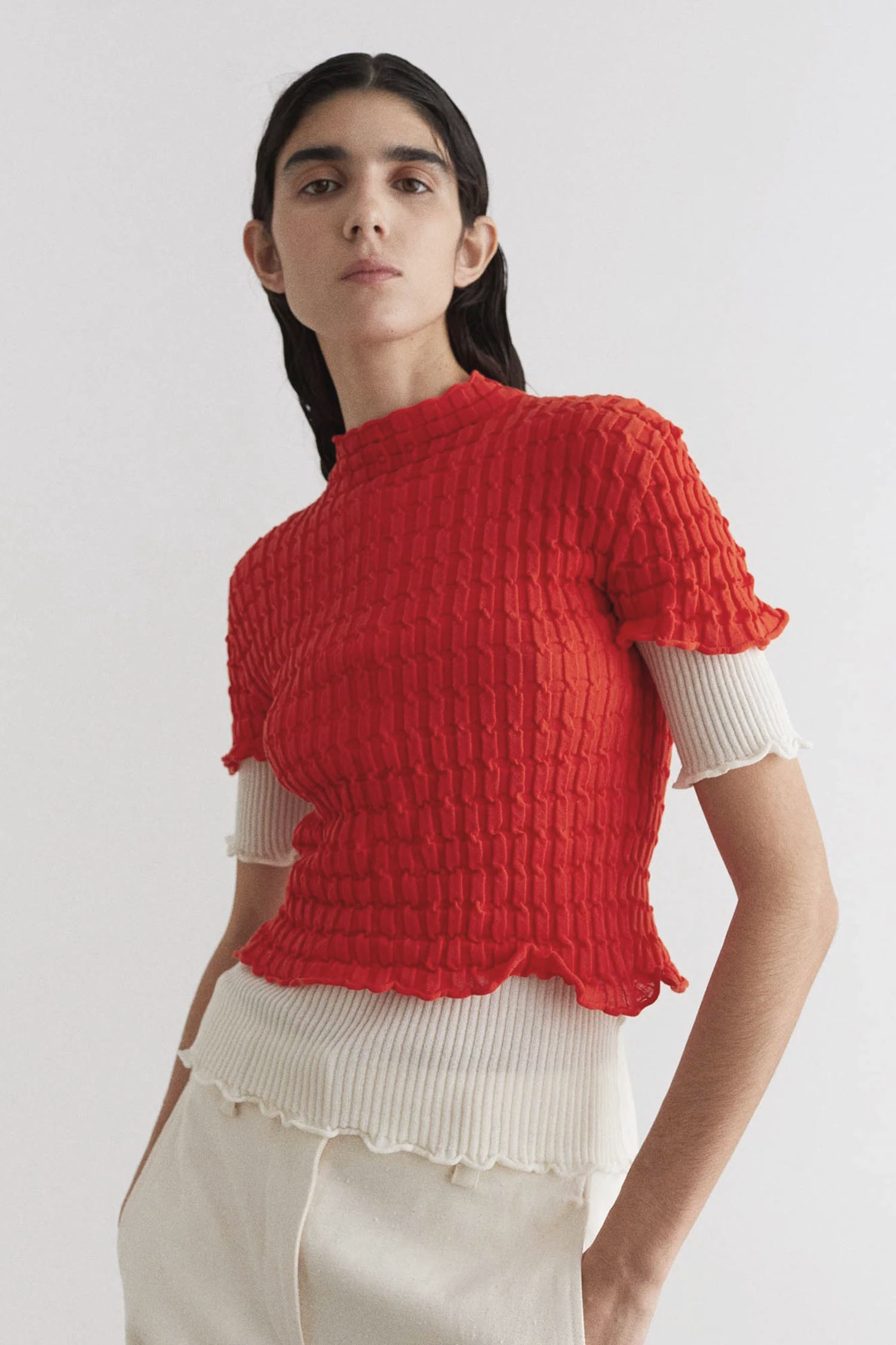 At RUS, every item of clothing is produced in a local, family-run factory. Fully fashioned knitwear is produced without yarn waste. With nature as inspiration, RUS creates a sensory world of tactile and visual experiences.