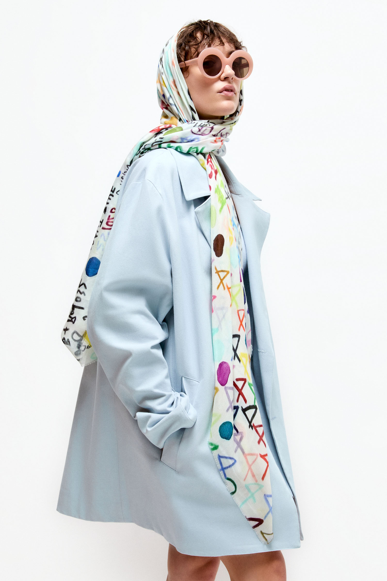 Einseitiger, rechteckiger Schal aus einer Modal, Seiden Mischung mit einem hochauflösenden, authentischen Allover-Druck. GPS-Code, der zum Ursprung des Designs zurückführt.