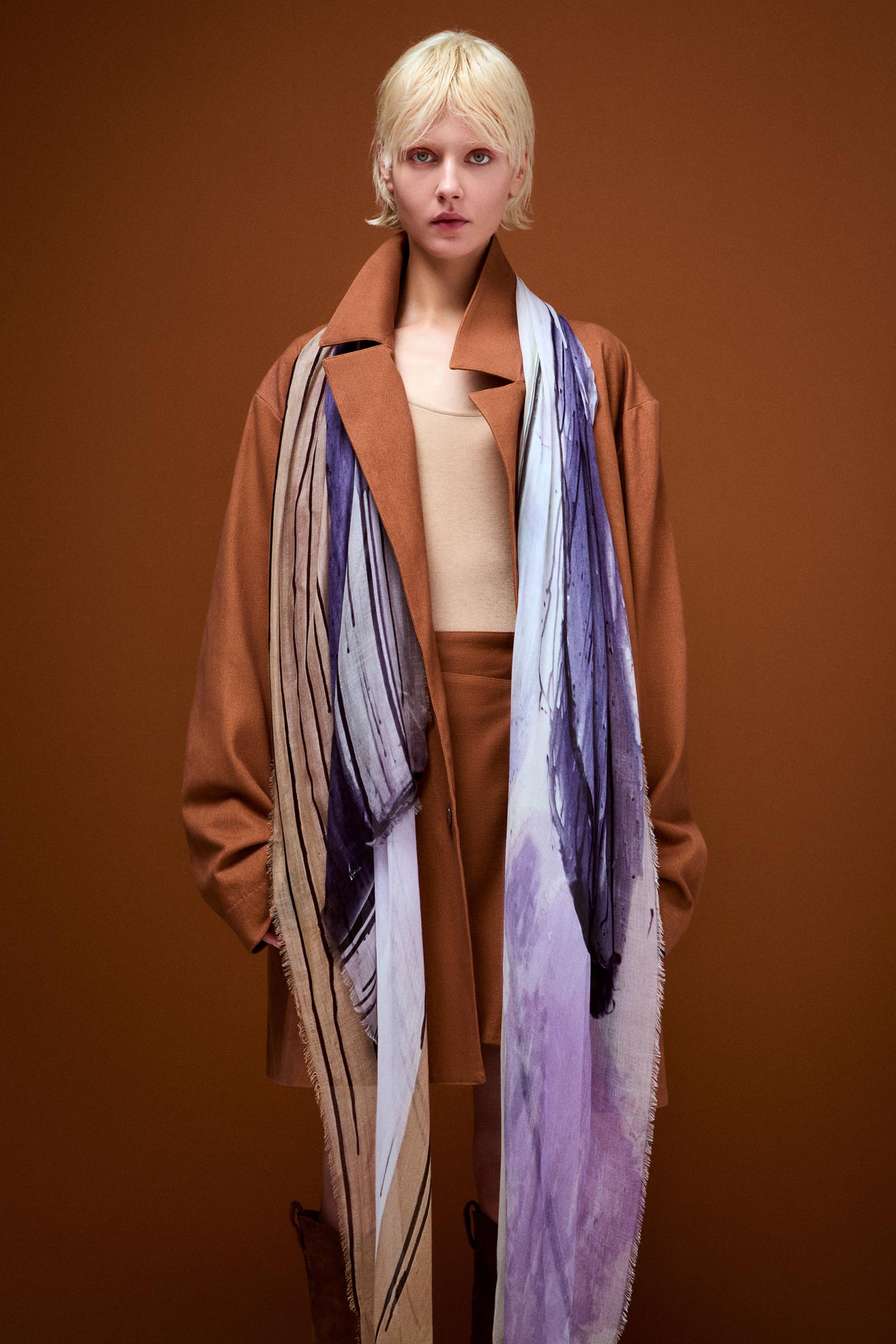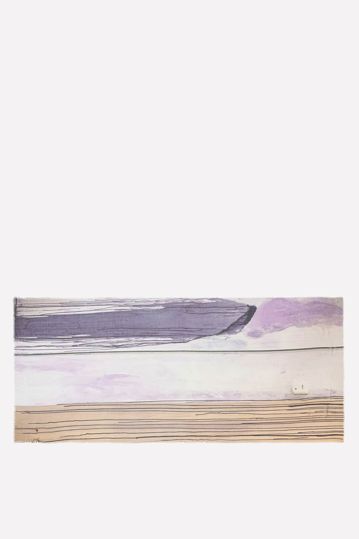 Einseitiger, rechteckiger Schal aus Modal mit einem hochauflösenden, authentischen Allover-Druck. GPS-Code, der zum Ursprung des Designs zurückführt.